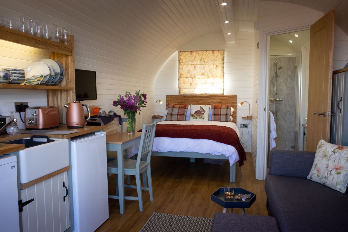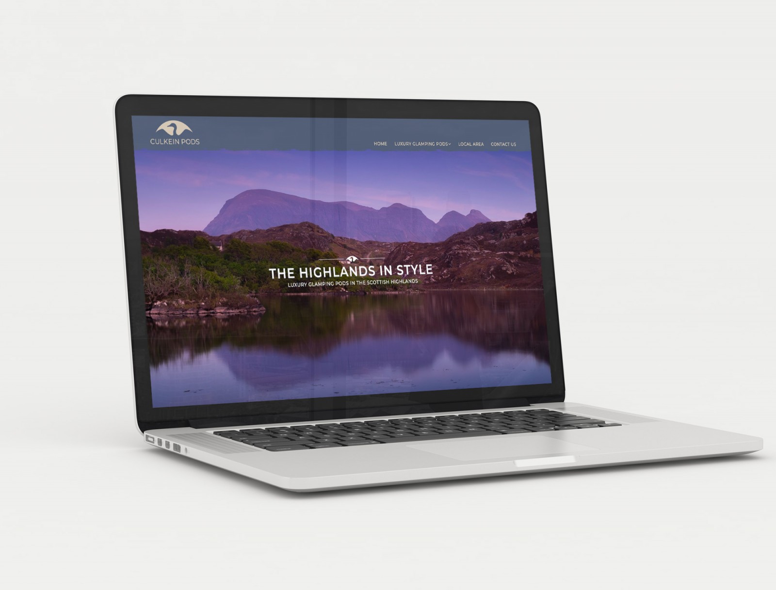 This website showcases luxury glamping pods on Scotland's west coast.